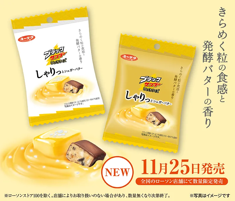 全国のローソン店舗にて、数量限定で登場する新商品「ブラックサンダーひとくちサイズ しゃりっとシュガーバター」。2025年11月25日(火)から販売が始まり、特に寒い季節にぴったりの贅沢なスイーツです。この新しいブラックサンダーは、一口サイズでちょうど良く、手軽に楽しめるのが特長です。