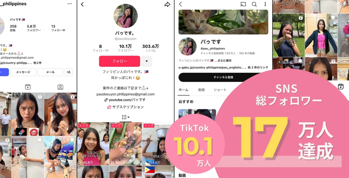 U-GAKUが2024年7月26日から新たにフィリピン出身のインフルエンサー、パゥ(Pau)さんを迎え入れました。彼女は、SNS上で大きな注目を浴び、特にTikTokではフォロワー数が10万人を超え、SNS全体で観客に届けるフォロワー数はなんと17万人を上回っています。