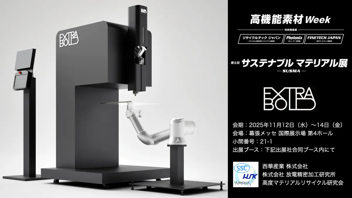 2025年11月12日から14日まで、幕張メッセ国際展示場で開催される「高機能素材Week/サステナブルマテリアル展2025」に、株式会社ExtraBoldが共同出展します。本展示では、同社が開発した協働ロボット型樹脂ペレット式3Dプリンター「REX-BUTLER」を実際に見ることができます。この3Dプリンターはペレット材料を直接押出して造形する新しいシステムで、再生樹脂やバイオマス素材を使用した大型造形が可能です。これにより、製造現場における資源循環や、工程効率の向上に寄与します。