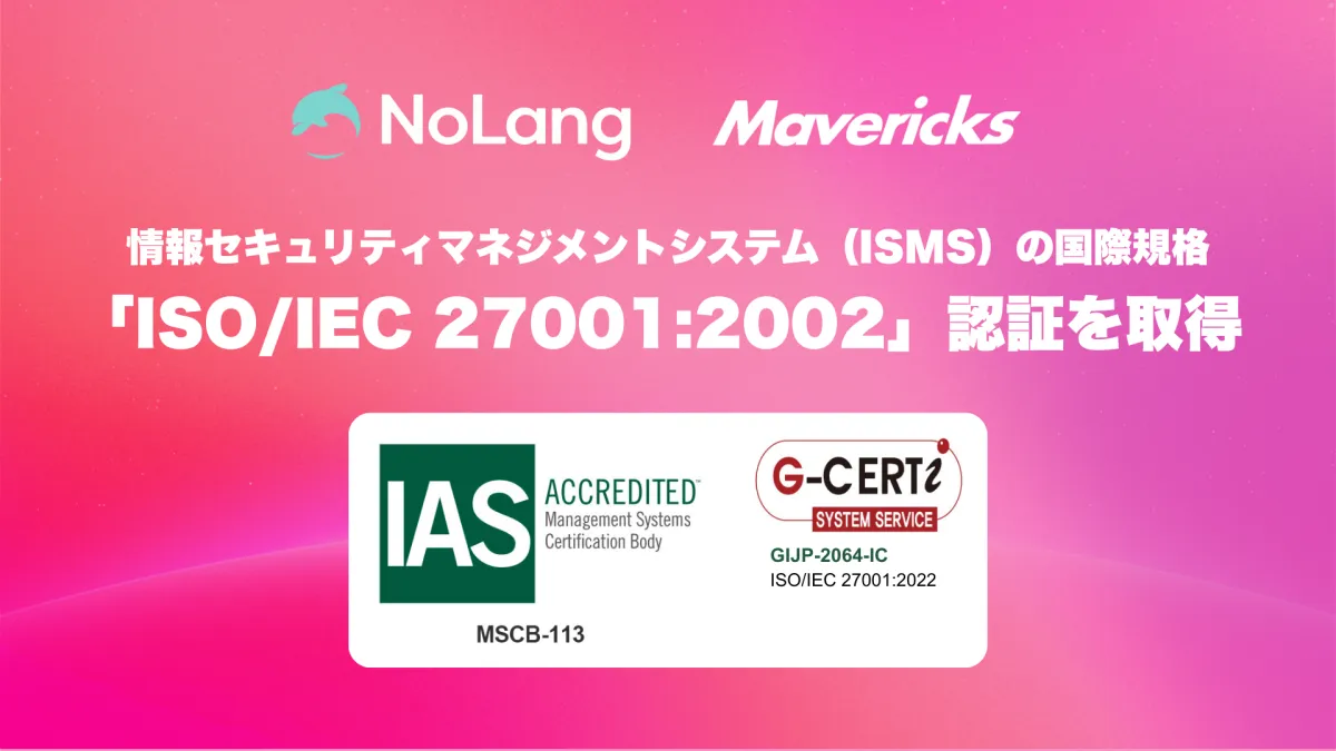株式会社Mavericksが開発した動画生成AI「NoLang(ノーラン)」が、情報セキュリティマネジメントシステム(ISMS)の国際規格である「ISO/IEC 27001:2022」認証を取得しました。この認証は、情報セキュリティの管理体制が国際基準に適合していることを示すもので、多くの法人顧客と個人ユーザーがNoLangを利用している中で、セキュリティ体制の強化は経営上の重要な課題として位置づけられています。