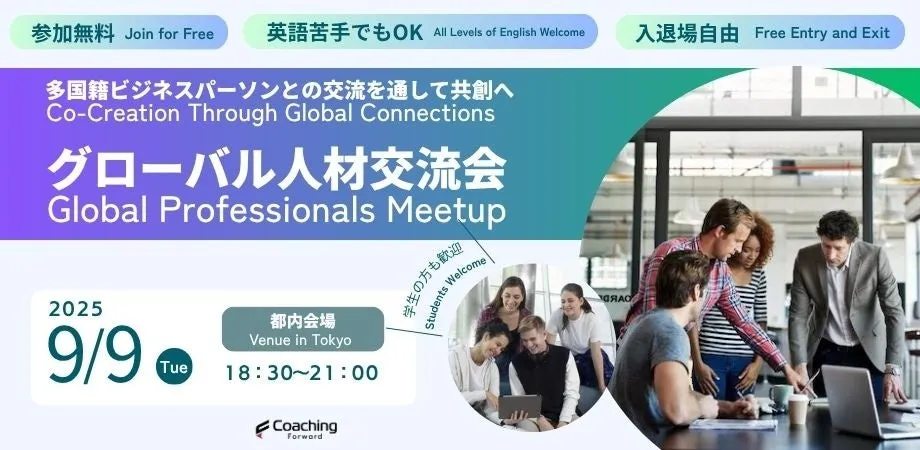 2025年9月9日、東京都内で「グローバル人材交流会」が開催されます。このイベントは、株式会社コーチングフォワードが主催し、外国人ビジネスパーソンや国際的な視点を持つ参加者が集まる貴重な機会です。