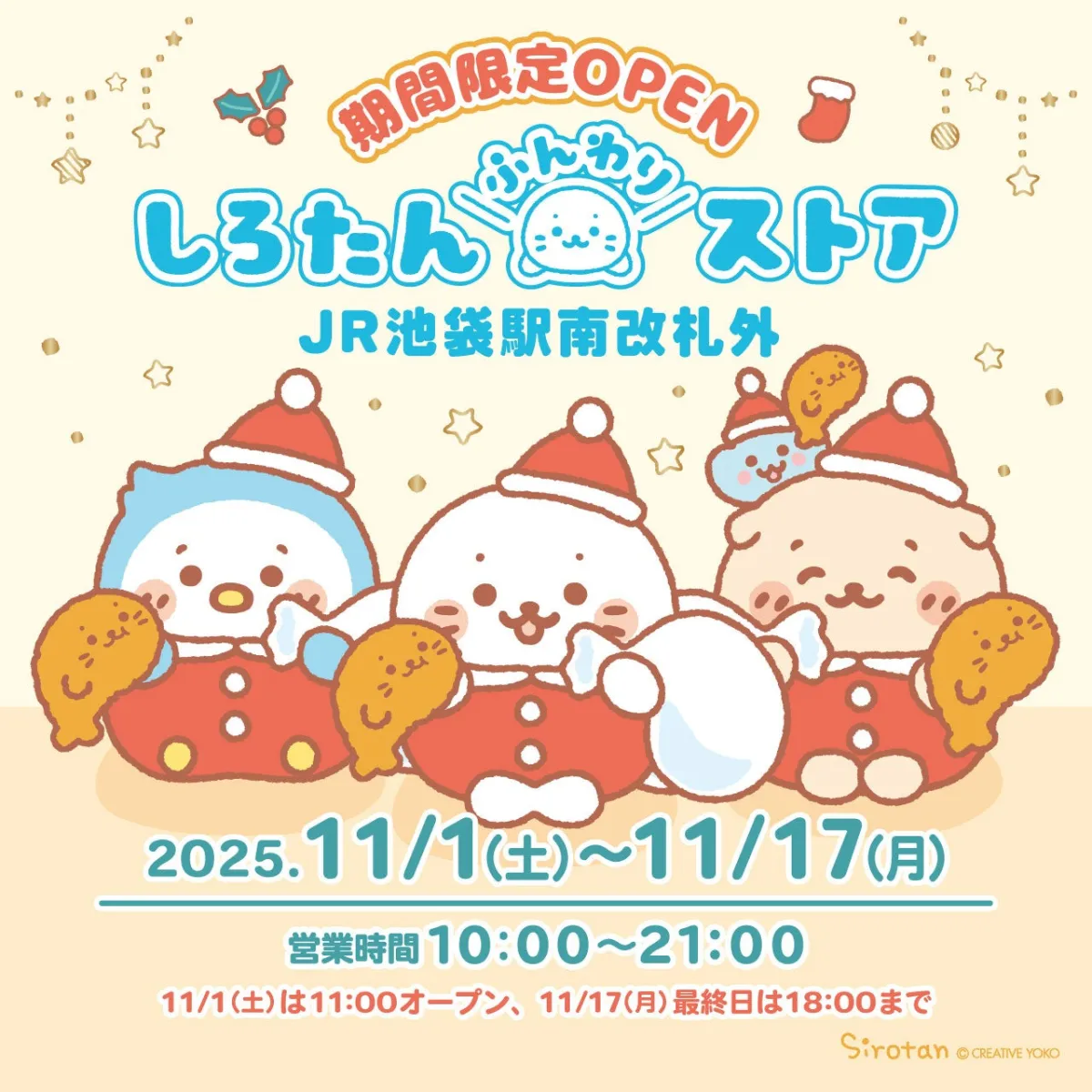 2025年の11月1日から17日まで、JR池袋駅にて、オリジナルキャラクター『しろたん』のポップアップストアが開催されます。