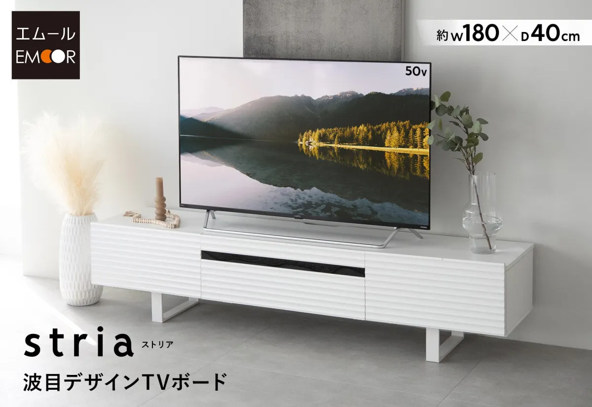 最近、株式会社エムールから新しいTVボード「stria ストリア」が発売されました。この製品は、白を基調とした波目デザインが特徴で、洗練された印象を持ちつつ、ミドルレンジの価格設定が魅力です。生活空間において、デザイン性と機能性を両立することを目指したこのTVボードは、リビングを上質な空間に変えてくれるアイテムです。