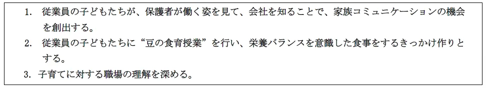 参加した子どもたちからは「楽しかった」「豆が好きになった!」「ママの会社を見られて嬉しかった!」という声が多く寄せられています。保護者たちも「親がどのような場所で働いているのか実体験してほしい」という願いが叶ったと喜んでいます。また、他部署の方々と子育てについて共有できたことも、新たな親近感につながったようです。