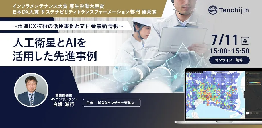 2025年7月11日(金)に、オンライン形式で開催される「人工衛星とAIを活用した先進事例~水道DX技術の活用事例と交付金最新情報~」のセミナーについて紹介します。本セミナーは、自治体職員や水道事業者を対象に、最新の水道運営におけるDX(デジタルトランスフォーメーション)技術を解説し、具体的な活用事例を紹介します。参加は無料で、興味を持つ方々のご参加をお待ちしています。