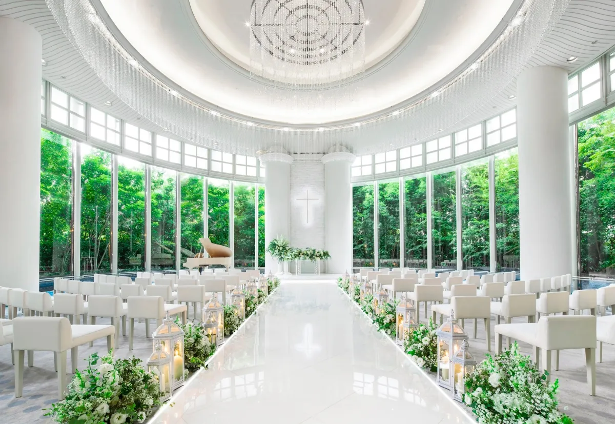 チャペル リュヴェールは、日本の美しいチャペル100選にも選ばれており、その美しい景観と静謐な空間が特別なひとときを演出します。光あふれるチャペルでの生演奏は、心に響く特別な体験となるでしょう。