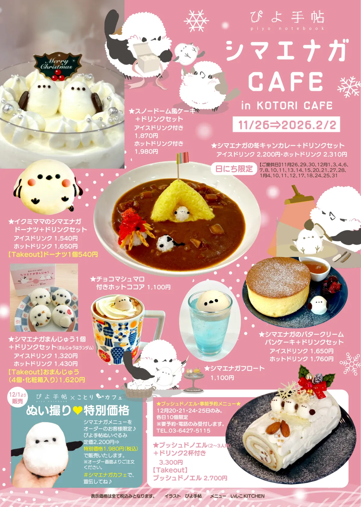 また、今年のカフェでは「シマエナガの冬キャンカレー」という特別なメニューも登場。福神漬けとともに、温まること間違いなしのカレーで、このメニューの提供日は限定されていますので、スケジュールの確認が必要です。カレーを楽しむ日は、11月26日から始まり、数日にわたって用意されています。