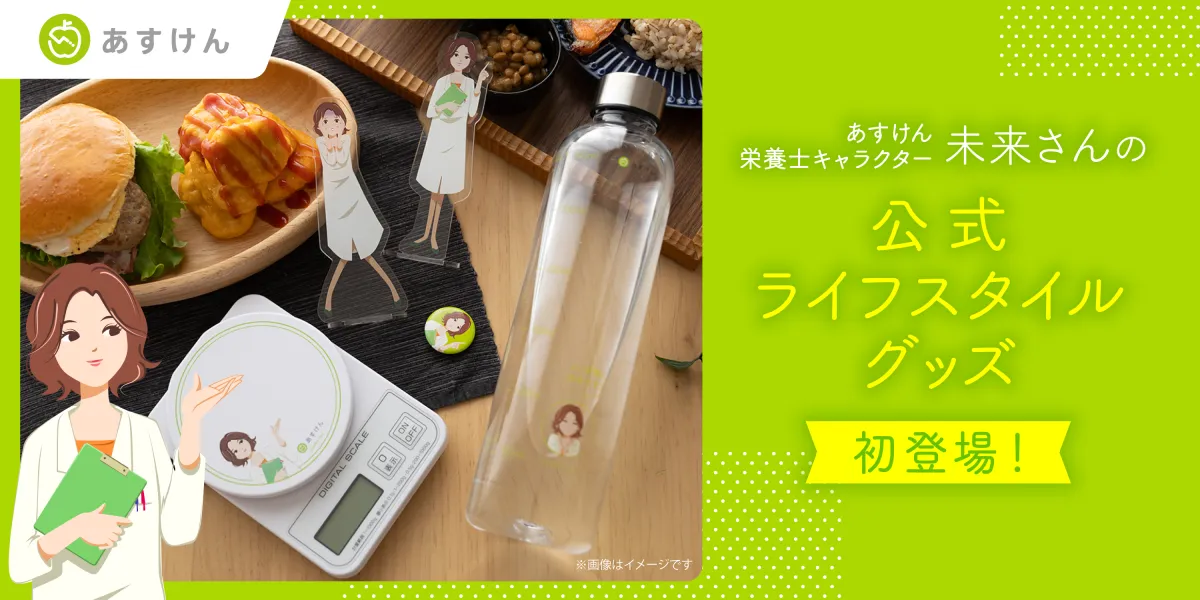 健康的な食生活を提案するAI食事管理アプリ『あすけん』の栄養士キャラクター、未来さんのライフスタイルグッズが遂に販売されます!