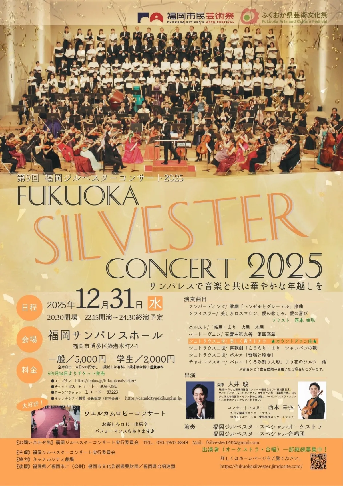 大晦日の特別な夜、福岡サンパレスホールで開催される第9回福岡ジルベスターコンサート2025。このコンサートは、地域の音楽文化の普及や貢献を目的とする市民参加型のイベントで、2014年から続いています。コロナ禍を除く毎年行われ、多くの人々が楽しみにしているこの特別なコンサートの一員として、合唱出演者を 모집(ぼしゅう)しています。