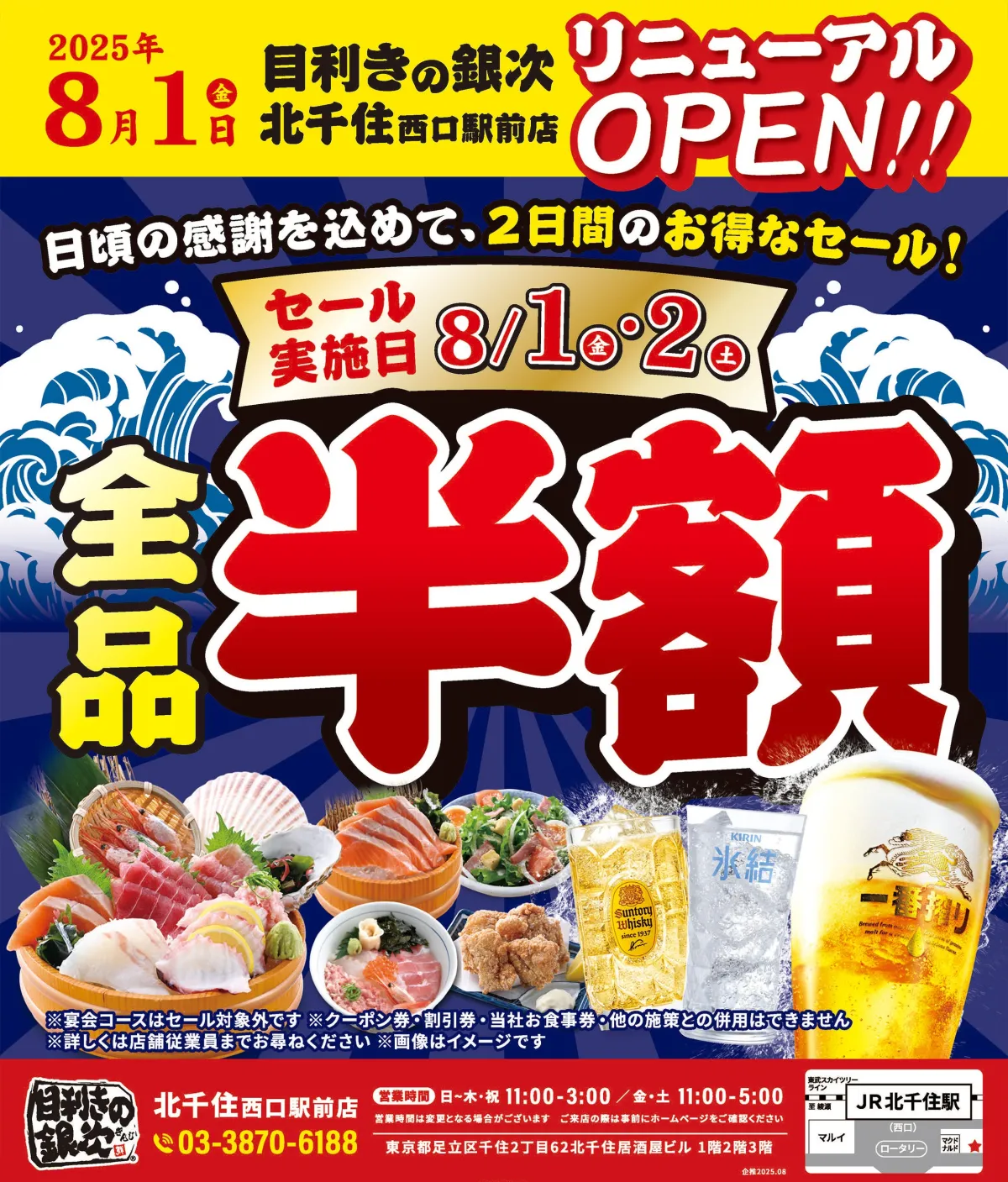 新たに生まれ変わる目利きの銀次 北千住西口店