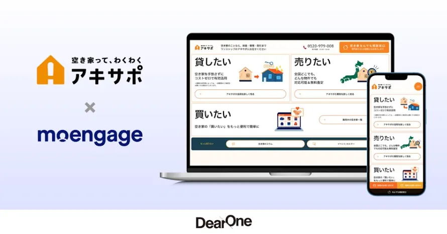 株式会社DearOneは、空き家解決サービス「アキサポ」においてマーケティングオートメーションツール『MoEngage』の導入を発表しました。この施策は空き家市場のデジタルトランスフォーメーション(DX)を目指すものです。