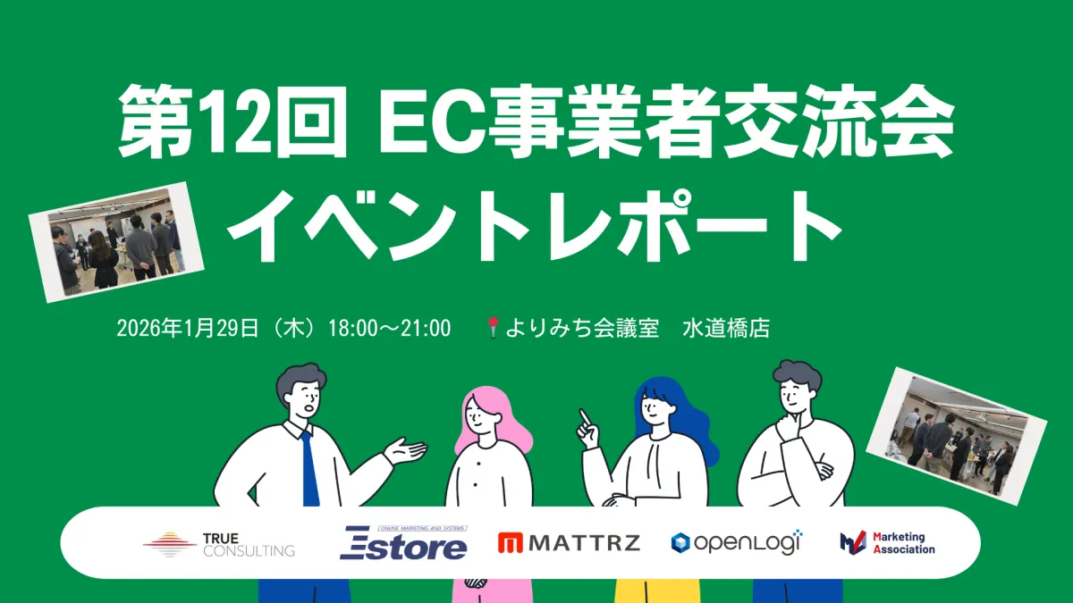 2026年の幕開けを祝う「第12回EC事業者交流会」が、東京都内で盛況に開催されました。このイベントは、ECサイトの運営代行サービスを行うマーケティングアソシエーション株式会社が主催し、トゥルーコンサルティング株式会社、株式会社Eストアー、Mattrz株式会社、株式会社オープンロジと共催で実現しました。