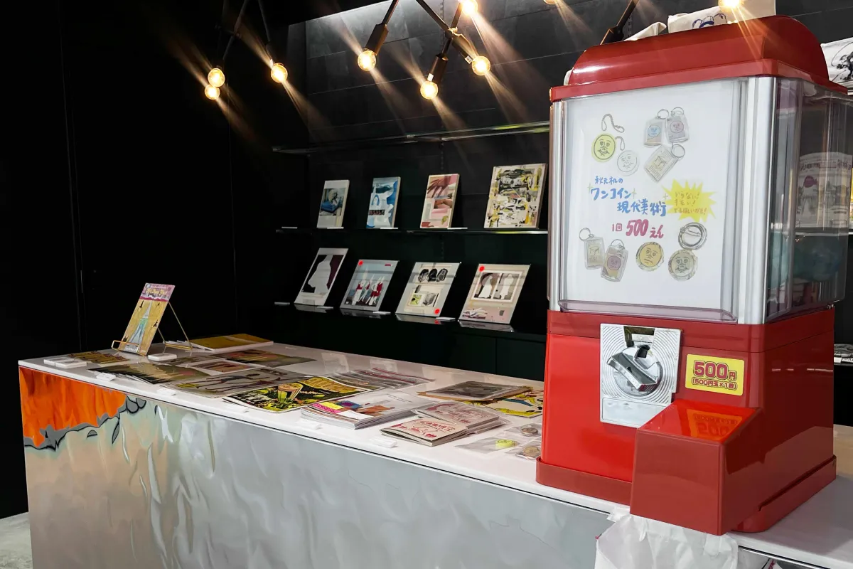 会場では秋元机のオリジナルグッズも販売されています。独特なデザインのTシャツやZINE、さらには数量限定のアイテムもあり、ぜひ早めにお立ち寄りください。特に一点もののアクリルキーホルダーや缶バッチが入っているガチャガチャも楽しめますので、どんなアイテムが手に入るかは運次第です。