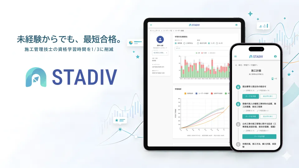 『STADIV』は、企業の資格取得支援に適したDXプラットフォームとして位置づけられています。電気工事分野での成功を受けて、管工事分野への拡張を決定した背景には、導入企業からの要望がありました。単に問題演習を行うのではなく、深い理解を促す学習体験が求められていたのです。