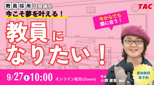 2025年9月27日(土)、オンラインで「今こそ夢を叶える。教員になりたい!」というセミナーを開催します。このセミナーでは、教員免許の取得方法や、選考に関する情報、さらには教員の福利厚生や待遇についてなど、教員を目指す上での不安を解消する内容をお届けします。