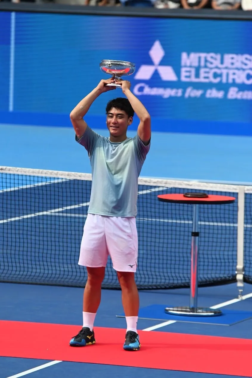田口涼太郎選手は、173センチの身長を生かしたアグレッシブなプレースタイルが特徴です。6歳からテニスを始め、2023年にプロ転向を果たしました。その後も全日本選手権での準優勝やベスト4を経て、今大会での二冠獲得へとつながっています。