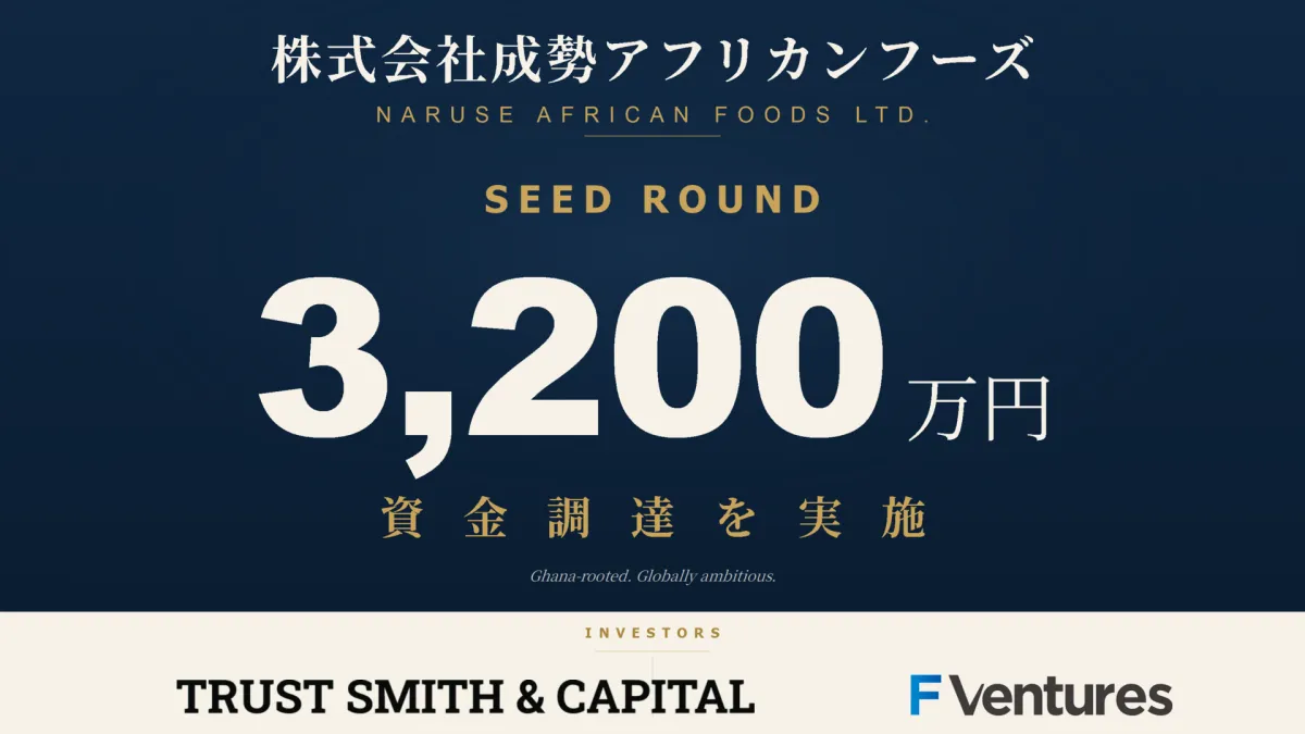 アフリカ料理の本格的ファストフードチェーンを作るべく、株式会社成勢アフリカンフーズ(代表取締役:木原淳兵)は、約3,200万円の資金をシードラウンドで調達しました。今後、ガーナ料理を中心に多店舗展開を進めることを目指しています。