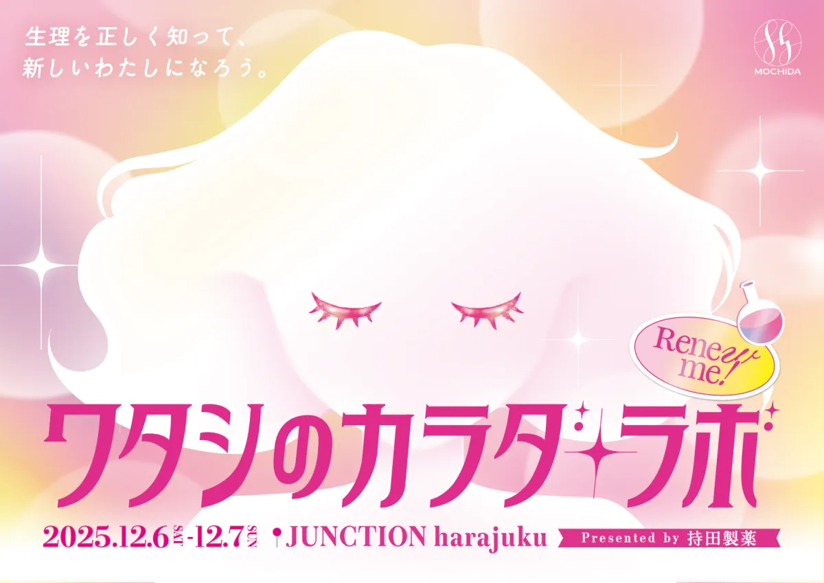 2025年12月6日(土)・7日(日)の2日間、渋谷の「JUNCTIONharajyuku」で開催される『Renew me!ワタシのカラダ・ラボ』。このイベントは、生理の悩みを抱える女性たちが自分の体と向き合い、理解を深めるために開催されます。主催の持田製薬株式会社は、見えにくく語られにくい生理にまつわる問題の認知度を高め、婦人科受診のハードルを下げることを目的としております。