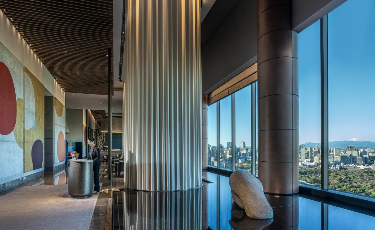 フォーシーズンズホテル東京大手町は、東京のエネルギーと優雅さが交差する「大手町」の高層ビルOtamachi Oneの最上階に位置しています。このホテルは、東京のダイナミックな景色を一望する唯一無二の場所であり、遠くには晴れた日の富士山も望むことができます。エレベーターを39階で降りた瞬間、目を奪うのは広がるスカイラインや皇居の緑です。この光景はまるで自然が額縁に収められた絵画のようで、訪れる人々に感動を与えます。