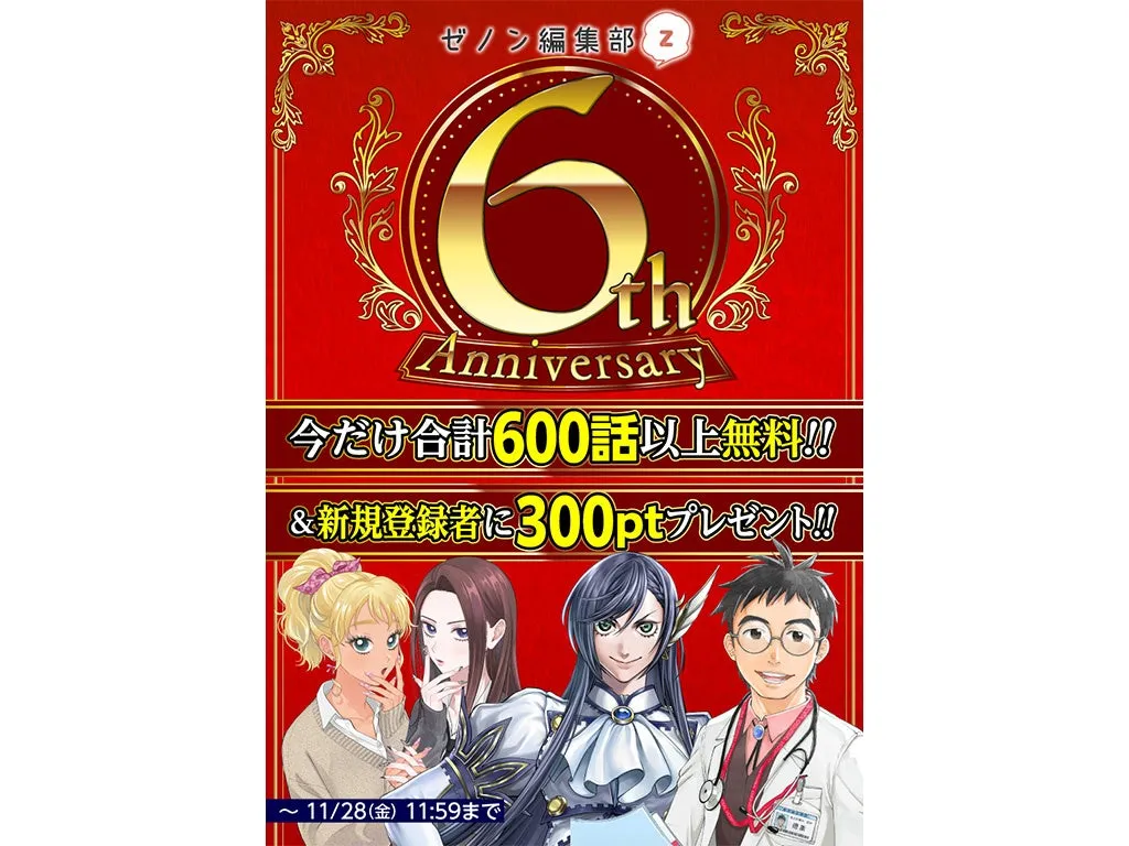 6周年を迎えたWEBゼノン編集部は、ますます充実したラインナップと豪華な企画で、漫画ファンを楽しませる準備が整いました。お得なキャンペーンや新作作品をぜひチェックして、6周年のお祝いを共に楽しみましょう!