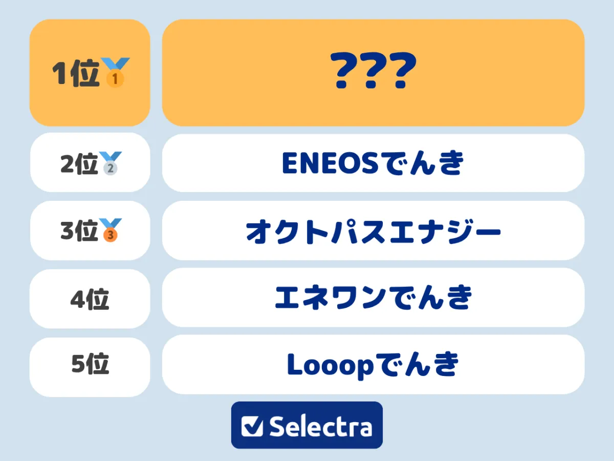 セカンドチョイスには「ENEOSでんき」が選ばれました。こちらは料金の安さが評価されつつ、さらにはガソリン代割引も特典として人気となっています。そして、市場で最も安価な「オクトパスエナジー」が意外にも3位にランクインしました。この新電力は知名度では上位2社に劣るためとも見られますが、料金そのものの安さは魅力です。