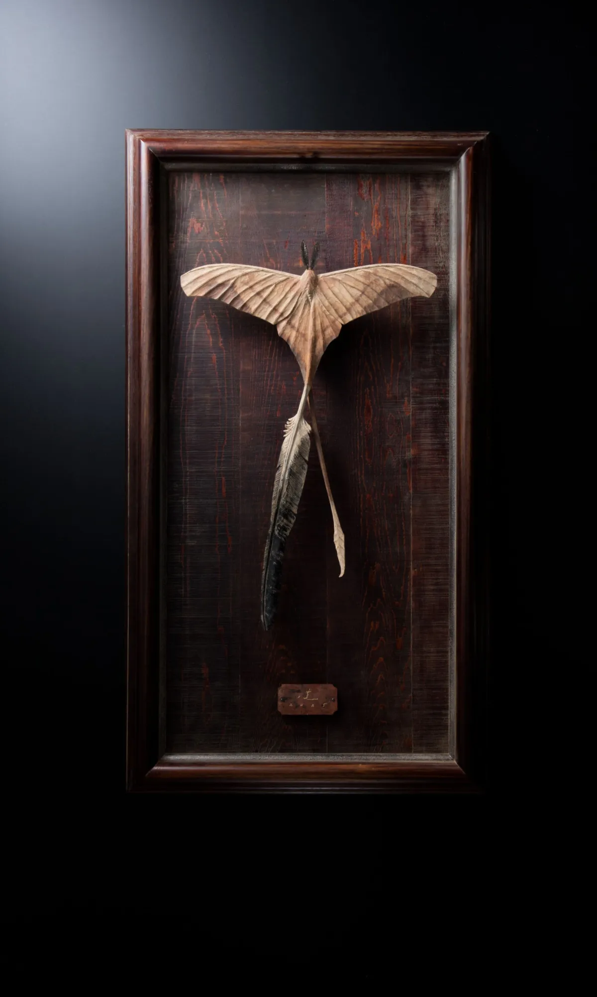 展示される作品の中には、卒業制作として創作された「カラスの舟は昇華する」や、アパレルブランドUNDERCOVERとのコラボ作品も含まれており、さらに「日本」をテーマにした「JAPAN」シリーズや、代表作である「ぬけない棘のエレファント」や「ぬけない棘の狼」など、様々な棘をテーマにした新作が揃っています。これらの作品は、ベースモチーフとして「蛾」を用いて独自に表現されています。
