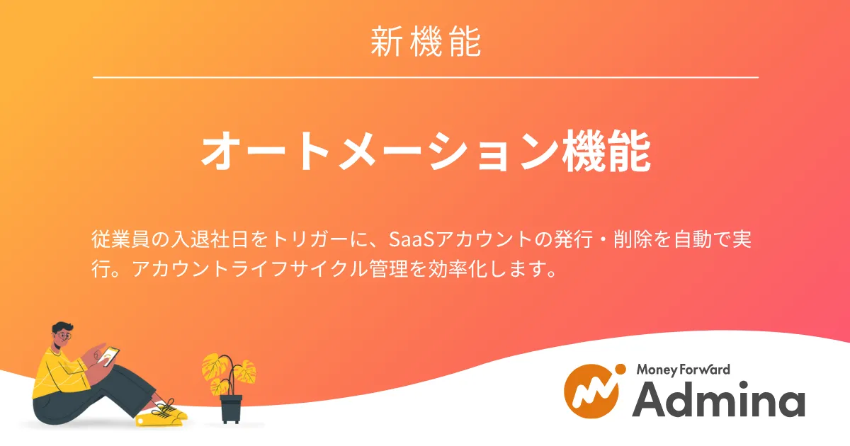 「オートメーション機能」は、従業員の入社日や退職日をトリガーに、必要なSaaSアカウントの自動発行と削除を実現します。この機能は「Admina Directory」と呼ばれる、人事データベースと連携しており、入社や退職に伴う情報の変更を自動で反映します。また、全従業員に対して一律にアカウントを発行したり、特定部門に限定した発行も可能です。これにより、企業の内部でのアカウント管理業務が大幅に効率化され、情シス担当者の負担を軽減することが期待されています。