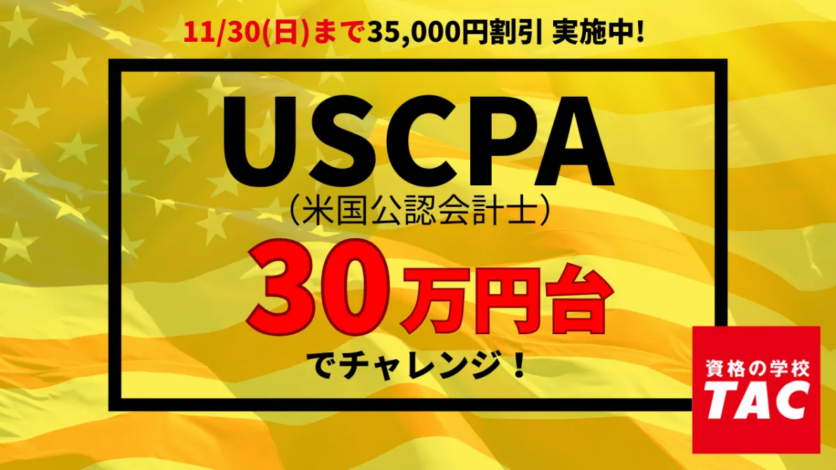 資格の学校TACが提供するUSCPA講座が、2023年11月1日から30日までの期間限定で「秋の特割キャンペーン第2弾」を実施しています。このキャンペーンでは、受講生に向けた特別割引を提供しており、受講料が通常価格から35,000円もお得になる特典が用意されています。