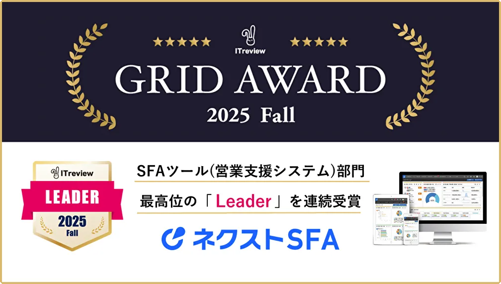 株式会社ジオコードが提供するクラウド営業支援・顧客管理ツール「ネクストSFA」が、2025年秋に行われた「ITreview Grid Award 2025 Fall」において、SFAツール部門で最高位の「Leader」を獲得しました。この受賞は、ユーザーからの高い評価と支持を受けた結果であり、同社の製品が市場でどれほど注目されているかを示すものです。