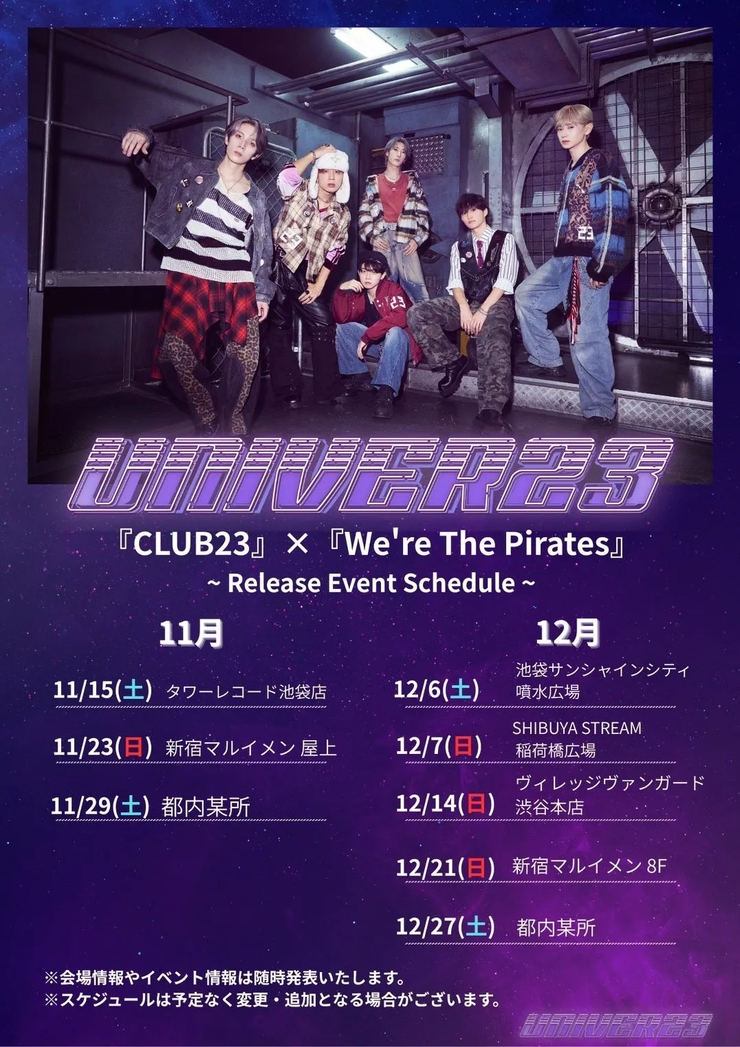 ボーイズグループ「UNIVER23」は、ついに待望のリリースイベントを発表しました。11月15日(土)から12月27日(土)にかけて、東京都内の8つの会場で開催されるこのイベントは、ファンにとって見逃せない機会です。