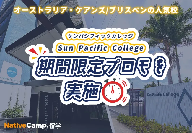 オーストラリアの人気語学学校である「Sun Pacific College」が、特別プロモーションを展開中です。このキャンペーンは2025年12月31日までに申し込んだ方が対象です。一般英語コースの授業料や滞在先費用が大幅に割引されるチャンスです。