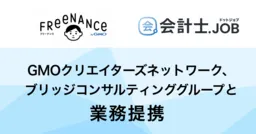 GMOクリエイターズネットワークは、ブリッジコンサルティンググループとの業務提携を2025年6月に締結しました。これにより、公認会計士のフリーランスが利用する「会計士.job」プラットフォームのユーザーは、GMOが提供するフリーランス特化型金融支援サービス「FREENANCE by GMO」を優遇価格で利用できるようになります。