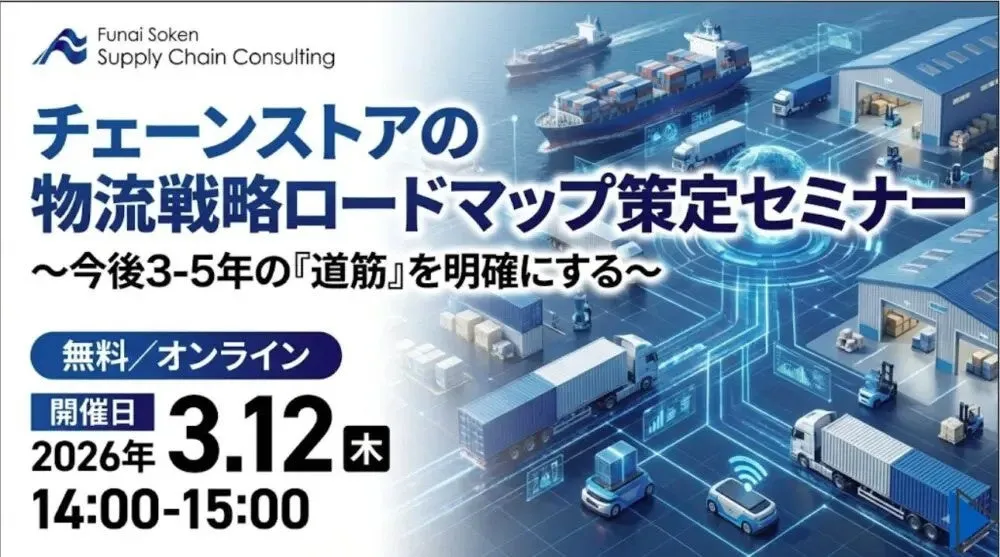 2026年3月12日、東京都中央区の株式会社船井総研サプライチェーンコンサルティングが、チェーンストアの物流戦略をテーマにしたオンラインセミナーを実施します。本セミナーでは、物流の最新動向や課題を踏まえ、経営戦略と連動した物流体制の構築方法について専門家が詳しく解説します。