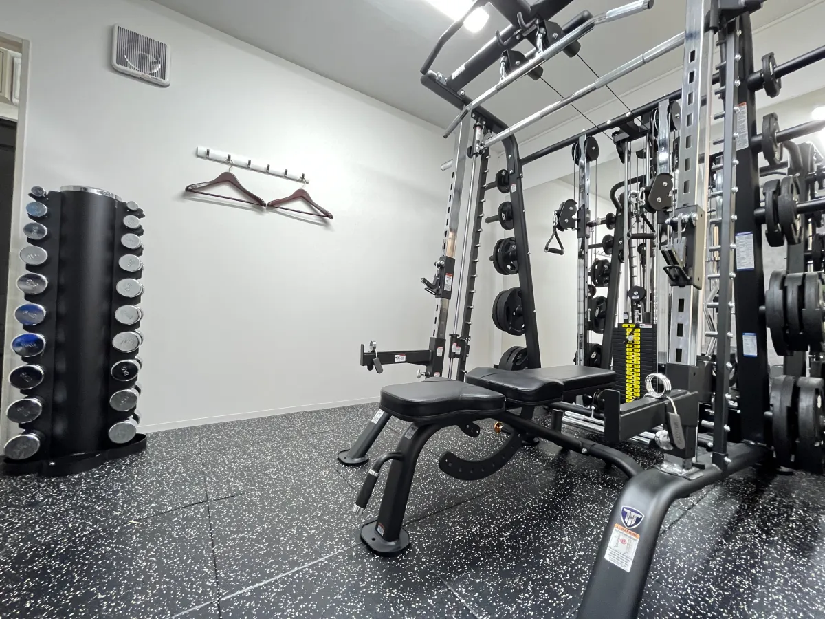 ジムの機材には、プロ仕様のTUFF STUFFが中心となっており、快適にトレーニングができる環境が整っています。また、内装はシンプルながらも機能性を重視。余計なコストを排除することで、60分7,700円(税込)という業界標準よりもお手頃な価格を実現しています。