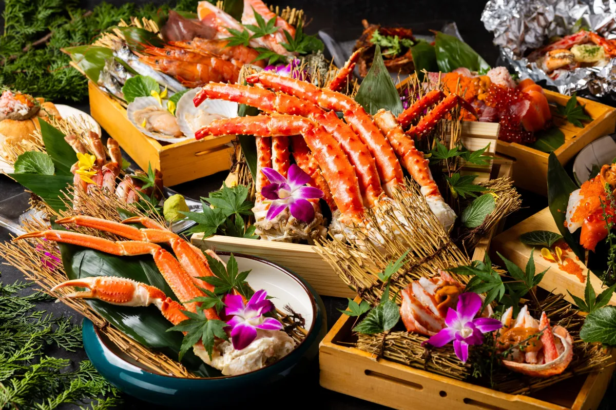 特におすすめは、「ズワイガニ食べ放題コース」で、100分間にわたって、蟹や海鮮料理を好きなだけ楽しめます。大人の方は7,777円(税込)で、ソフトドリンク飲み放題もついています。家族で賑やかに過ごすのにぴったりのプランです。