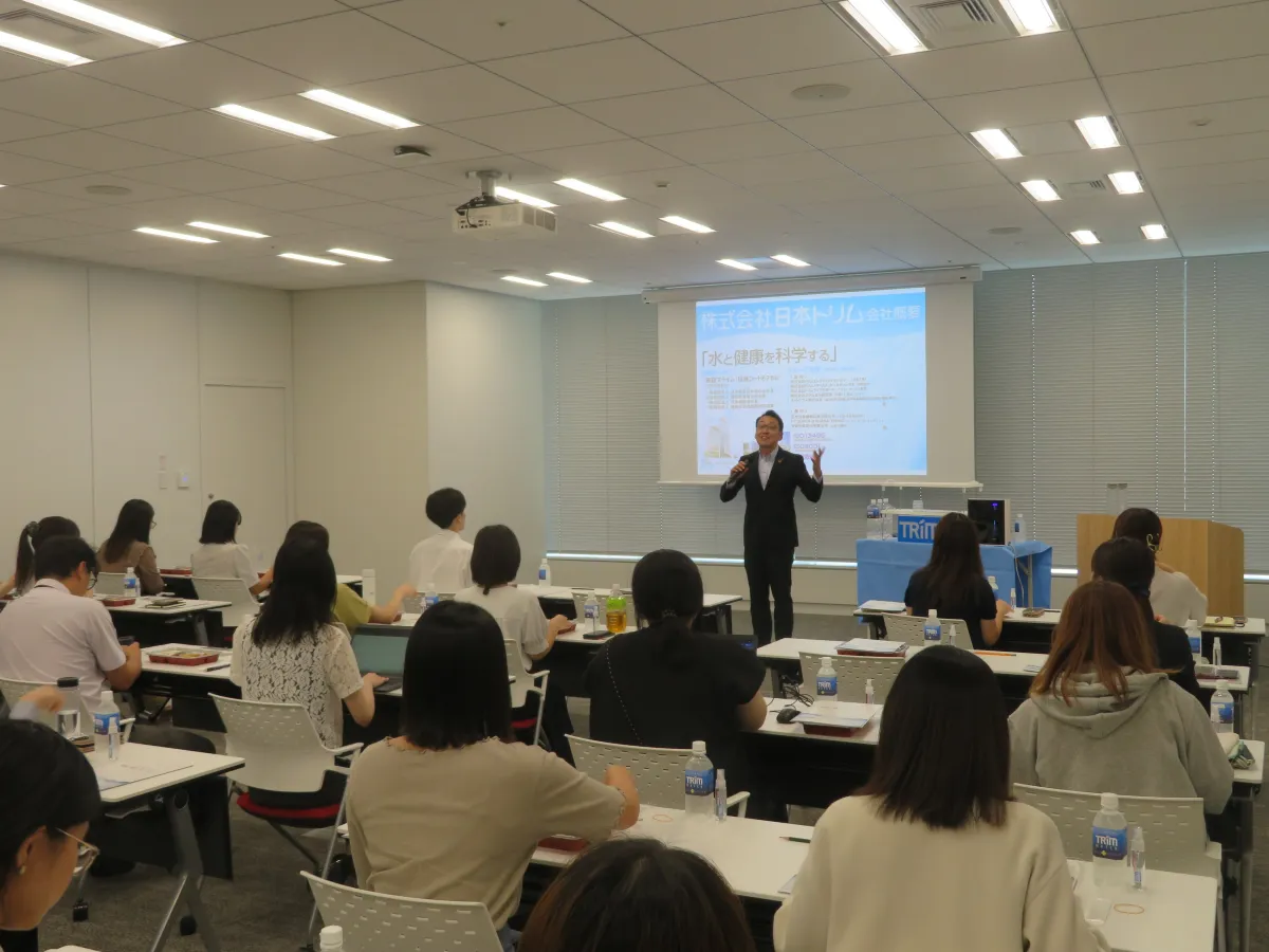 2025年9月18日、ケイアイスター不動産株式会社は、健康経営の推進を目的とした「水に関するランチセミナー」を開催しました。本セミナーでは、株式会社日本トリムの執行役員板津好哉氏を講師に迎え、水分補給の重要性や水がもたらす健康への効果について学ぶ貴重な機会となりました。