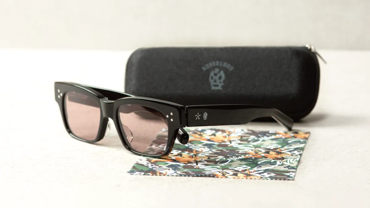 コラボレーションサングラスには、Russelunoのオリジナルケースとレンズクロス、さらにURMのスリングケースが付属します。この付属品は使い勝手が良く、日常生活でも活躍するアイテムです。