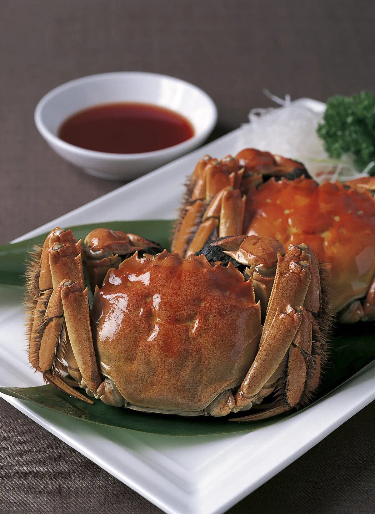 「上海蟹」は、その名の通り中国の代表的な高級食材です。特にメスのものは、甘美な蟹味噌が特徴で、口に入れるとふわっと広がる旨みがたまりません。リーガロイヤルホテルでは、伝統的な“蒸し”という調理法を用いて、その素材の良さを最大限に引き出しています。蒸し上げる際には、中国の伝統的な醸造酒「紹興酒」を使用し、蟹の身と蟹味噌が極上の一品へと仕上げられます。