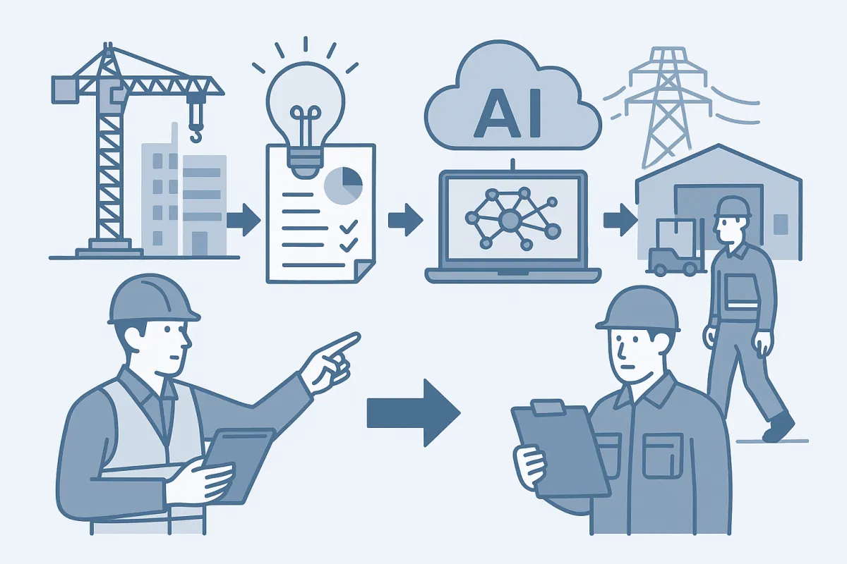 AIを活用した新規事業の企画、プロトタイプ開発、そして現場への導入までを一貫してサポートします。建設・ライフインフラ分野の課題を的確に捉え、AI技術を最大限に活かした革新的なソリューションを共に創出することが目指されています。