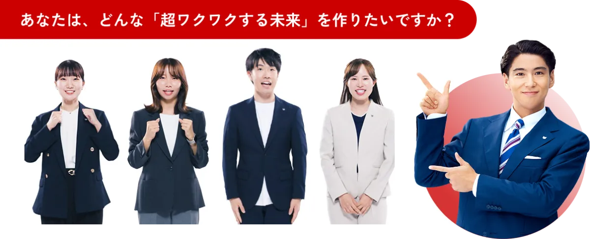インタビュー動画では、賀来さんが「あなたはどんな、超ワクワクする未来を作りたいですか?」と問いかけます。勇気をもって答える若手社員たちは、それぞれの業務に基づいた未来像を語ります。例えば、流通小売業に関わる営業担当は、お客様が新しいことに挑戦できる未来の実現を目指しています。