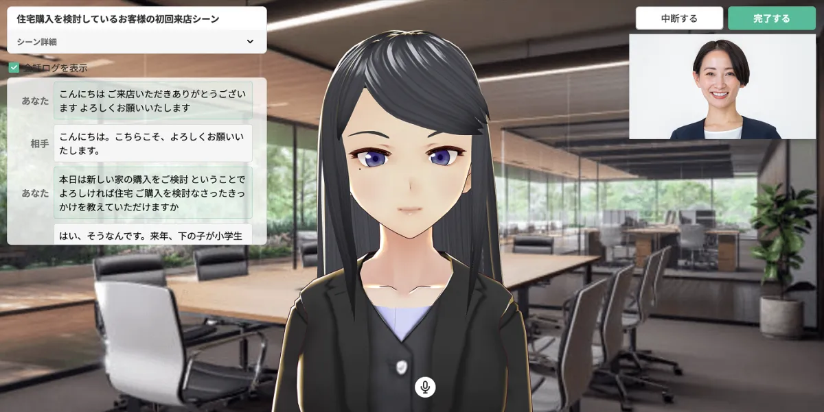 - - アバターとの対話: 様々なペルソナやシーンを設定できるため、多様な顧客応対を効率的に学習できます。