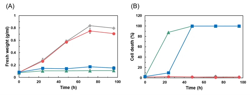 研究の中で、植物の内部に生息する共生細菌、すなわち植物内生細菌に着目しました。研究グループは、コマツナから分離したDelftia sp. BR1R-2株という植物内生細菌を用いて、タバコ培養細胞であるBY-2細胞との共培養を試みました。通常、微生物との共培養では植物培養細胞の増殖に悪影響を及ぼすことが多いですが、この研究では特に増殖を妨げることがないという利点が見出されています。