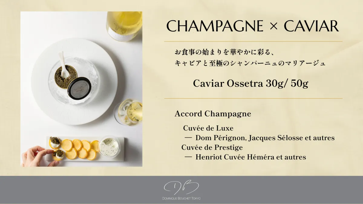 東京の銀座に位置する「ドミニク・ブシェ トーキョー」は、フランス料理の本格的な体験を求める人々にとって、訪れる価値がある人気のレストランです。2013年のオープン以来、同店はミシュランガイドで星を獲得し続け、シェフの名を冠したオリジナルラベルのキャビア・オシェトラの提供が始まりました。この高級キャビアと厳選されたシャンパーニュとのセットプランが登場します。期間は2025年11月20日から2026年2月28日までです。