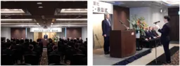 入社式は午前10時から始まり、代表取締役社長の髙須康有氏が新入社員に向けて訓示を行いました。彼は今年度の入社が101年目のスタートであることを強調し、次の100年に向けて、62名の新入社員と共に歩み出せることを大変嬉しく思うと述べました。