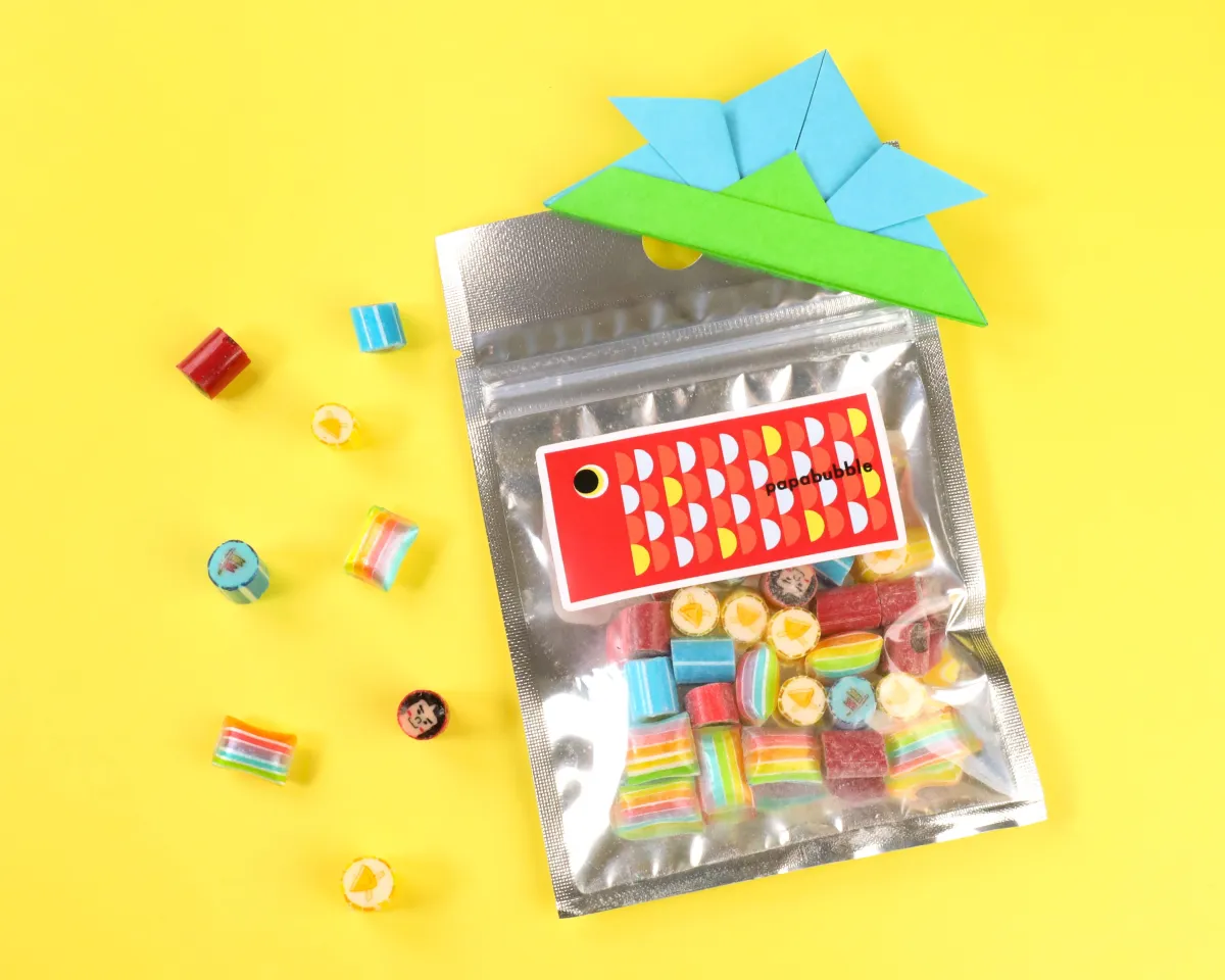 今回のキャンディには、金太郎やこいのぼり、そしてカブトのモチーフが用いられており、どれも元気な表情をしています。デザインはパパブブレらしい明るいカラーで仕上げられており、見るだけでもワクワクします。また、パッケージには大きなこいのぼりのイラストがあしらわれているため、一目で季節感を感じられます。