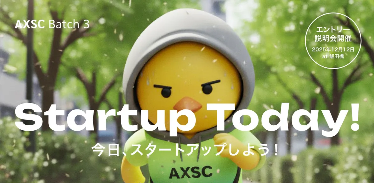 Axla合同会社が主催するAI駆動のアクセラレータープログラム「AXSC」が、3期エントリーの無料説明会を開催します。日程は2025年12月12日(金)、場所は文京区のGROWTH文京飯田橋です。