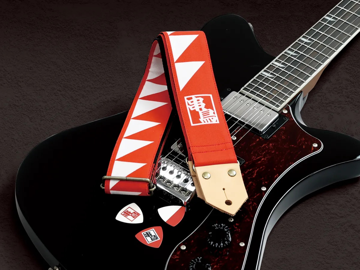 今回のコラボ商品は、串鳥の印象的な紅白デザインを施したギターピックとストラップ。特にギターストラップは、存在感のあるデザインに仕上げられており、ステージでも注目を集めること間違いなしです。