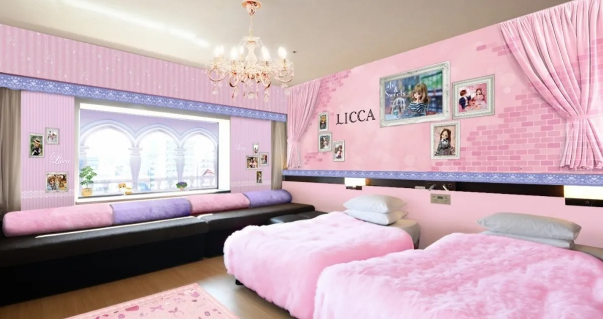 客室は、広さ37㎡もあり、ドアを開けると等身大のリカちゃんLEDパネルがあなたを出迎えます。お部屋の中は、壁やバスルームまでもリカちゃんのデザインで埋め尽くされており、リカちゃんファンにはたまらない空間となっています。また、室内には隠された4つの「リカちゃんカード」を探す参加型イベントもあり、成功すればオリジナルのリカちゃんグッズがもらえます。