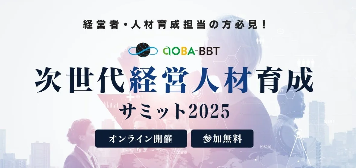 企業の未来を見据えた人材育成がますます求められている中、株式会社Aoba-BBTは「Aoba-BBT 次世代経営人材育成サミット2025」というオンラインイベントを開催します。本サミットは、経営と人材育成の本質を探求しながら、参加者に次世代のリーダーシップ育成について考えるきっかけを提供します。