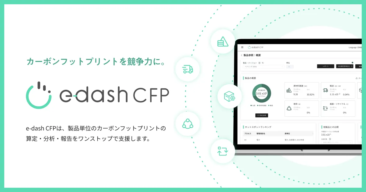 e-dash株式会社と三井物産株式会社が2025年に事業統合し、新たに「e-dash CFP」サービスの提供を開始することを発表しました。これは、製品やサービスのライフサイクルにおけるCO2排出量を可視化し、効果的に管理するためのクラウドプラットフォームです。この統合は、企業の持続可能な成長を促進し、透明性を高めることを目的としています。